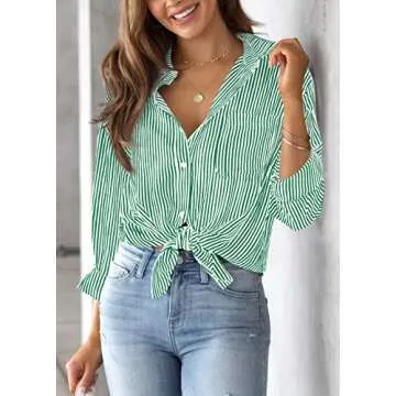 Show moreIntroducing the **AISEW Women's Button Down Shirts Striped Classic Long Sleeve Collared Office Work Blouses Tops with Pocket** (Green, 7002S), the perfect blend of style and comfort. Crafted with a high-quality fabric mix of **80% cotton and 20% polyester**, this button-down blouse is designed to be lightweight, durable, and easy to wear, making it an essential addition to your wardrobe. The **oversized fit** complements various body shapes while ensuring you feel comfortable all day long. With a sophisticated v-neckline accentuated by its stylish stripe pattern, this blouse offers versatility for both formal and casual settings.