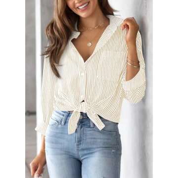 Show moreIntroducing the AISEW Women's Button Down Shirts: a perfect blend of style, comfort, and versatility! Crafted from a high-quality fabric blend of 80% cotton and 20% polyester, this shirt is designed for women who appreciate both durability and a lightweight feel. The charming striped pattern and buttoned front create an elegant v-neckline, making it a standout addition to your wardrobe. This shirt is not just about looks; it's about functionality too, featuring a classic collar and chest pocket that adds a touch of sophistication to any outfit.