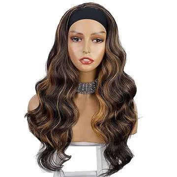 Introducing the AISI HAIR Long Wavy Brown Mix Blonde Headband Wig, a stunning blend of style and convenience. This high-density synthetic wig features a beautiful body wave design that effortlessly frames your face while providing an incredibly natural look. With its comfortable headband attachment, this wig is not only easy to wear but also allows for a secure fit, making it perfect for anyone, regardless of their wig experience. Made from heat-resistant fiber, you can style this wig to...