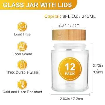 AISIPRIN Glass Jar with Lid 12 Pcs 8oz, Glass Spice Jars with Lable, Candle Jars, Mason Jars 8oz with Airtight Bamboo Lids,Including Blank lables