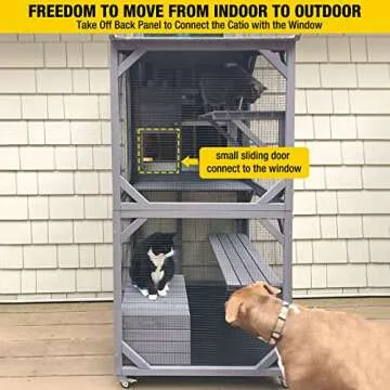 Show moreExperience the ultimate blend of design, functionality, and safety with the Aivituvin Cat House Outdoor Catio. This 70.9" kitty house is ingeniously crafted to provide your feline friends with a spacious and secure environment, whether indoors or outdoors. Featuring an upgraded resting box and a waterproof asphalt roof, this multi-tiered enclosure not only ensures your pet’s comfort but also allows them to soak in the sights, sounds, and smells of the outdoors. Perfect for pet parents who prioritize adventure while keeping their pets safe, the Aivituvin cat house combines practicality with a playful charm that’s sure to captivate both you and your furry companion.
