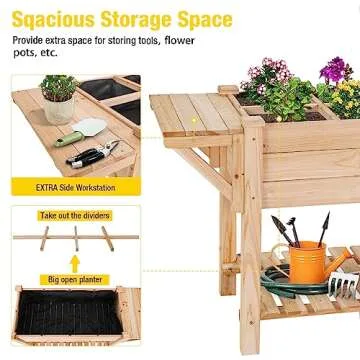 Show moreIntroducing the Aivituvin Raised Garden Bed! This elevated planter is the perfect solution for gardening enthusiasts looking to maximize their growing space while maintaining an organized and accessible planting area. Designed with a spacious EXTRA side workstation and a large bottom storage layer, this planter not only provides ample space for your plants but also ensures you have a convenient place to store tools and supplies. The aesthetic natural finish beautifully complements any outdoor area, turning your gardening hobby into a delightful experience.