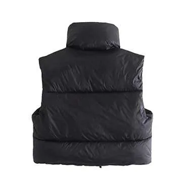 AIWUFLY Women's Winter Crop Vest Lightweight Sleeveless Zip Up Stand Collar Puffer Down Vest Black Large