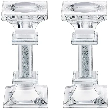 Show more Transform your living space into a sanctuary of elegance and warmth with the Aixita Candlestick Holders Set. These exquisite candle holders, designed to hold taper and pillar candles, feature a stunning clarity that showcases the flickering glow of candlelight. Measuring 5.28 inches in height and crafted from high-quality, thick lead-free glass, these beautiful holders not only provide stability and safety as they adorn your surfaces but also reflect a timeless sophistication that complements various home styles. The top opening diameter of 1.65 inches gracefully tapers to a base diameter of 0.83 inches, adding a touch of refinement that elevates your decor.