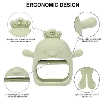 AIXMEET Silicone Baby Teething Toys, Chick Baby Teether Toy for 3+ Months, Baby Chew Toys for Sucking Needs, Never Drop Baby Mitten Teether for Soothing Teething Pain Relief, Easy Clean (Green)