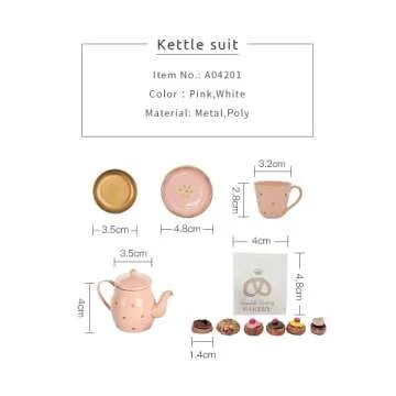 Aizulhomey Metal Miniature Dollhouse Furniture Tea Pot Set 7 Pcs Size Suitable for 1:6 Scale Dollhouse Decoration Dollhouse Accessories Color White