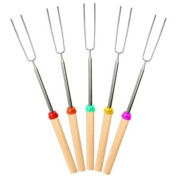 Show more If you love creating memorable moments around the campfire or backyard, look no further than our premium marshmallow roasting sticks! Designed for both quality and safety, these 32-inch telescoping forks are made from heat-treated stainless steel with sturdy wooden handles, ensuring a secure grip while protecting your hands from the heat. Whether you're roasting marshmallows, hot dogs, or veggies, you'll enjoy the flexibility and durability that these roasting sticks provide. The unique telescoping feature allows you to cook from a safe distance, making them perfect for family gatherings where safety is a priority.