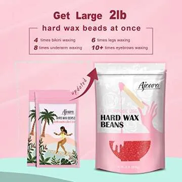 Ajoura 2 lb Hard Wax Beads, All-purpose Wax Beans for Sensitive Skin, Large Area Coarse Hair Removal, Refill Bag for Brazilian Bikini, Face, Eyebrows, Underarms, Arms, Chest, Back, Legs, Women Men