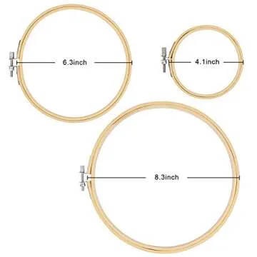 Show more Introducing the AK KYC 15 Pieces Embroidery Hoops Set - the perfect companion for all your crafting needs! This versatile set includes five pieces each in sizes of 4.1 inches, 6.3 inches, and 8.3 inches, giving you the flexibility to tackle a variety of projects. Crafted from pure natural materials like bamboo and wood, these hoops not only ensure a safe and environmentally friendly crafting experience but also provide durability and a unique aesthetic to your work. Whether you’re a seasoned crafter or just starting your journey in sewing and embroidery, these hoops make a great addition to your toolkit.