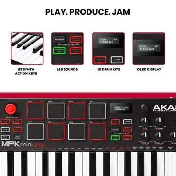 AKAI Professional MPK Mini Play – USB MIDI Keyboard Controller With a Built in Speaker, 25 mini Keys, Drum Pads and 128 Instrument Sounds