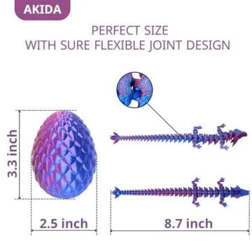 AKIDA 2 Packs Dragon Eggs with Dragon Inside, Dragon Egg Fidget Toy, 3D Dragon Eggs with Dragon Inside, Mystery Dragon Egg, 3D Printed Dragon Egg, Stocking Easter Basket Stuffers (Purple and Blue)