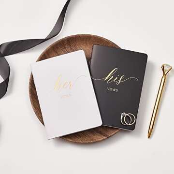 Introducing the AKITSUMA Vow Books for Wedding Bride and Groom, a magnificent gift set designed to make your special day even more memorable. This carefully crafted duo includes a beautifully embossed black and white booklet featuring stunning gold foil accents, making it a perfect accessory for your wedding ceremony. With 24 lined pages made of high-quality 120 gsm paper, these vow books are not only aesthetically pleasing but also functional,...