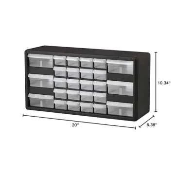 Akro-Mils 10126 Stackable Cabinet,26 Drawers,20"x6-3/8"x10-11/32",Black/Gray