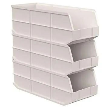 Each bin has been expertly crafted with reinforced ribs to prevent spreading under heavy loads, supporting weights of up to 60 pounds. This makes them ideal for a wide range of applications including garage or shed storage, hardware supplies, industrial items, or even kitchen essentials like canned goods. The beige color offers a neutral and clean aesthetic that seamlessly blends into any environment.