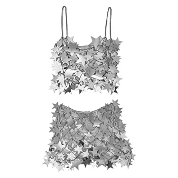 Show more Unleash your inner star with the Aksod Women Sexy Star See Through Crop Top Sequins Hollow Out Shirt! This captivating ensemble is designed to elevate your style and draw attention wherever you go. Made with high-quality plastic and alloy, the see-through mesh cover-up features glittering star sequins that shimmer brilliantly, ensuring you stand out in any crowd. Its light and airy material is perfect for those hot summer days, making it ideal for parties, beaches, or nights out on the town. With adjustable shoulder straps and a flexible back closure, this outfit offers a comfortable fit for various body shapes, allowing you to flaunt your curves with confidence.