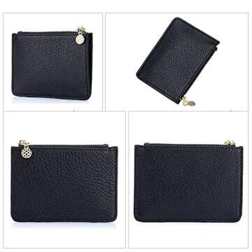 Show moreIntroducing the Aladin Leather Coin Purse with Key Chain, a perfect blend of style and practicality designed for the modern woman. This chic and fashionable wallet measures a compact 4.6" x 3.4" x 0.4" (11.8cm x 8.6cm x 1.0cm), making it small and thin enough to fit snugly into your handbag or pocket, yet spacious enough to hold your essentials securely. Crafted from genuine top-grain cowhide leather, it boasts a soft and durable finish that exudes elegance and comfort, ensuring longevity while looking stylish every day.