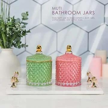 ALAMHI Candy Dish with Lid Glass Decorative Box with Lid, Vintage Jewelry Box Trinket Boxes, Small Candy Jar with Lid Crystal Apothecary Decor Box, Birthday Gifts For Friends Female (Green)
