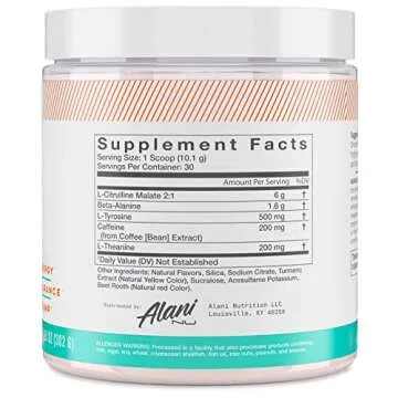 Show moreUnleash your inner athlete with the Alani Nu Pre Workout Powder in Mimosa flavor, a premier choice among fitness enthusiasts looking for an energy boost without the added sugars. Crafted to perfection, this pre-workout supplement brings a deliciously refreshing taste reminiscent of a celebratory mimosa. Each serving contains 200mg of caffeine, L-Theanine, Beta-Alanine, and Citrulline, designed to propel you into higher intensity workouts with sustained energy. Its unique formula not only increases your endurance but also enhances your overall workout experience, ensuring that every gym session is a step towards achieving your fitness goals.