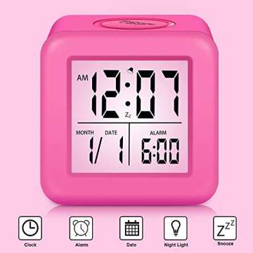 Alarm Clock, Digital Clocks,Snooze NightLight Alarm Clocks for Students Back to School, Kids & Teens (Hot Pink)