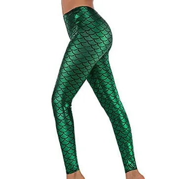 Experience the allure of the sea with our captivating Alaroo Halloween Shiny Fish Scale Mermaid Leggings. Crafted from a premium blend of 88% polyester and 12% spandex, these leggings not only offer a comfortable and soft touch but also ensure durability and stretch. The vibrant green mermaid print scale design is not merely a print, but a textured fabric that stands out, making these leggings perfect for a range of activities from yoga to themed parties....