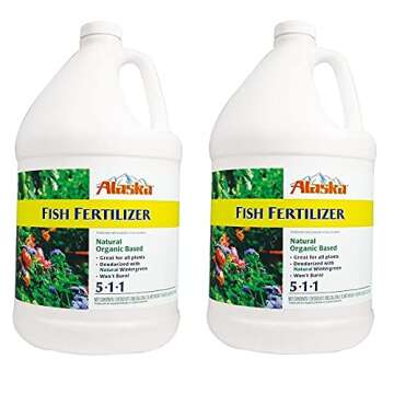 Show moreThe **ALASKA Fish Emulsion Fertilizer 5-1-1 Concentrate** is a gardener's secret weapon for promoting healthy plant growth while harnessing the power of organic materials. Packed in a **1-gallon bottle**, this fertilizer is designed for both indoor and outdoor plants, making it versatile for all your gardening needs. This two-pack offers great value, ensuring you have enough supply for larger gardening projects. With a balanced **N-P-K ratio of 5-1-1**, it provides an excellent source of primary nutrients for vibrant growth and foliage development. The fish emulsion is easily absorbed by plants, resulting in nourished roots and lush greenery, and it’s also safe for the environment, promoting sustainable gardening practices.