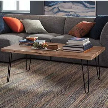 Alaterre Furniture 42-Inch Coffee Table with Metal Hairpin Legs and Natural Live Edge Acacia Wood Top, Clear Natural Finish, Modern Industrial, Farmhouse Style, Living Room Furniture Set