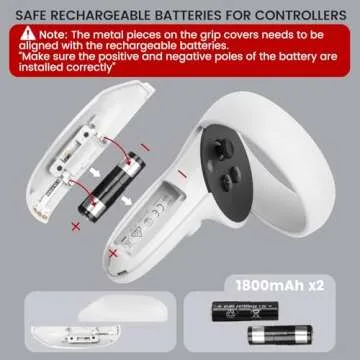 Equipped with a Type-C magnetic connector, the charging station can fully charge your headset in just about 3-4 hours and your controllers in approximately 4-5 hours. With an intuitive LED indicator that changes from red to green, you will never have to wonder about the charging status again. Featuring two 1800 mAh rechargeable batteries with custom covers, say goodbye to endless battery replacements and hello to a sustainable gaming atmosphere!
