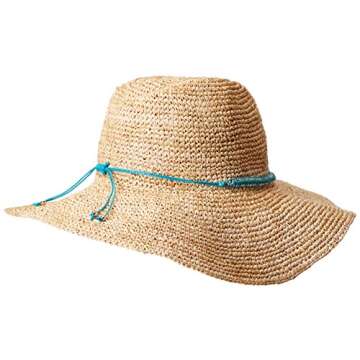 ale by Alessandra Women's Cody Crochet Raffia Sunhat Packable, Adjustable & UPF Rated, Natural/Turquoise, One Size