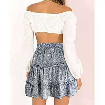 Alelly Women's Summer Cute High Waist Ruffle Skirt Floral Print Swing Beach Mini Skirt Blue