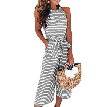 Alelly Women's Summer Jumpsuits Striped Tie Back Sleeveless Backless Wide Long Pants Rompers