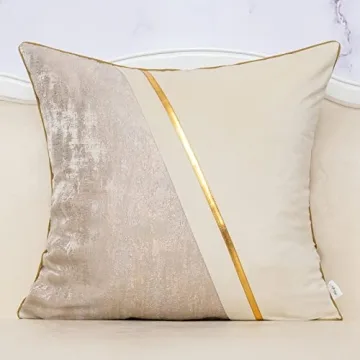 Show moreTransform your living space into a luxurious oasis with the exquisite Alerfa 20 x 20 Inch Off White Beige Gold Leather Patchwork Velvet & Polyester Cushion Case. Crafted from a unique blend of premium velvet and polyester, this decorative pillow cover not only adds an elegant touch but also enhances the aesthetic appeal of your home. Its beautiful patchwork design, featuring a harmonious palette of off-white, beige, and gold, exudes sophistication, making it a perfect accessory for any room. Measuring at 20" x 20" (50cm x 50cm), this cover fits standard pillow inserts, ensuring a plush look and feel in your living room, bedroom, or car.