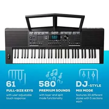Alesis Harmony 61 Pro - 61 Key Keyboard Piano with Adjustable Touch Response, USB Midi, 580 Sounds, X/Y Performance Touchpad with DJ-Style FX