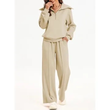 Show more The Aleumdr Two Piece Outfits is designed to redefine comfort and style. Constructed from a premium blend of polyester, viscose, and elastane, this loungewear set offers unmatched comfort, durability, and softness. With a cozy fleece lining for added warmth, this set is ideal for chilly fall and winter outings. Featuring a trendy half-zip top that allows easy adjustment for warmth, it pairs perfectly with the stylish wide-leg pants, making it a chic addition to any wardrobe.