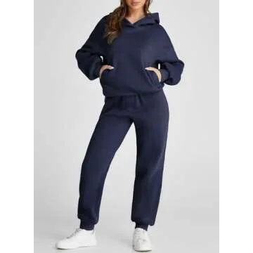 Aleumdr Womens 2 Piece Outfits Matching Sets Sweatsuit Hoodie Sweatshirts and Sweatpants Tracksuits Joggers Sweat Sets 2024 Fall Comfy Clothes Airport Travel Lounge Sets Blue Medium