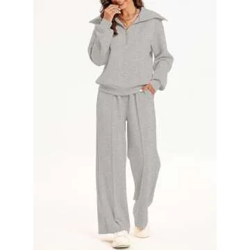 Aleumdr Womens 2 Piece Outfits Sweatsuits Fleece Lounge Set Quarter Sweatshirt Matching Set Oversized Pullover Wide Leg Sweatpant Tracksuits 2024 Fall Casual Travel Clothing Set Grey