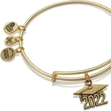 Compared to other graduation jewelry on the market, the Alex and Ani bangle offers superior craftsmanship and a unique customizable fit. While other bracelets may use traditional clasps and limited sizing, this bangle's innovative sliding mechanism ensures comfort and adaptability. Additionally, the specific 2022 charm design highlights the significance of the graduation year, setting it apart from generic options available.