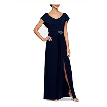 Alex Evenings Women's Navy A-Line Dress with Cowl Neck, Size 12