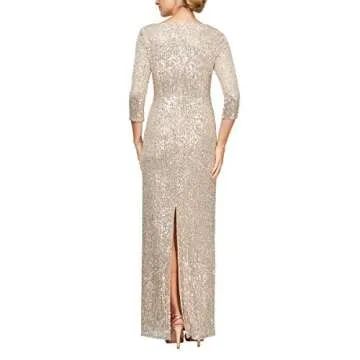 Alex Evenings Women's Petite 3/4 Sleeve Long Dress with Cinched Tie Waist, Taupe Sequin, 12P