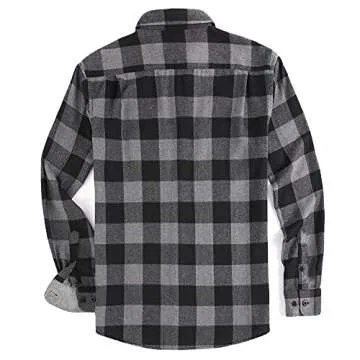 Alex Vando Mens Button Down Shirts Regular Fit Long Sleeve Casual Plaid Flannel Shirt.Grey/Black,L