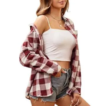 Alex Vando Womens Flannel Shirt Regular Long Sleeve Button Down Flannel Shirts for Women,Burgundy/White,XL