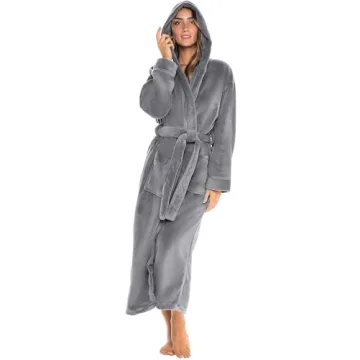 Show more The Alexander del Rossa Hooded Bathrobe is an exquisite blend of comfort and style that redefines what it means to relax at home. Crafted with twice the thickness of average fleece robes, this robe is a luxurious haven during the chilly Fall and Winter months. Its ankle-length design ensures that you are completely enveloped in warmth, making it the perfect go-to for those cold nights. The soft, plush fabric is designed to feel heavenly against your skin, providing you with a cozy experience that is nothing short of bliss.