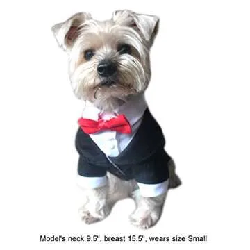 Alfie Pet - Oscar Formal Tuxedo with Black Tie and Red Bow Tie - Color: Black, Size: XS