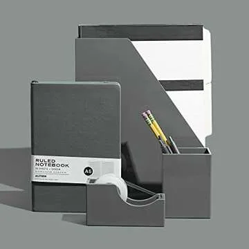 Alfion Vertical Organizer Box | Magazine File Holder | Colorful Modern Desk Accessories for Office, Home, or School 2-Pack (Charcoal Grey)