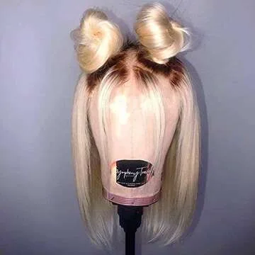 Show more Introducing the Ali Grace Short Bob Lace Front Wig – an exquisite blend of style, versatility, and comfort tailored for the modern woman. Made from 100% unprocessed virgin human hair, this wig is designed not just to look natural but to feel like your own hair. Its stunning ombre blonde color (1B/613) adds a touch of elegance to any look, making it a perfect choice for both casual outings and special occasions. With a length of 12 inches, the wig features a glueless construction that allows for easy installation, while the adjustable straps ensure a secure and comfortable fit tailored to your head size.