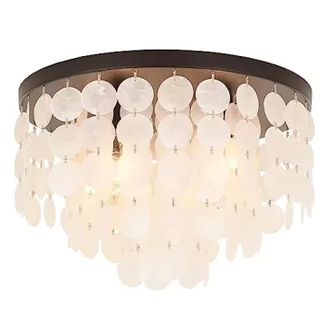 Show moreTransform your home with the ALICE HOUSE 17.7" Capiz Shell Ceiling Light. This exquisite lighting fixture marries rustic charm with a touch of coastal elegance, featuring beautifully hand-polished thin shells that create a mesmerizing illumination in any space. Its unique design, ideal for bringing warmth and brightness, is perfect for various areas including bedrooms, kitchens, dining rooms, and entryways. The soft glow of this four-light flush mount light not only enhances your decor but also elevates the atmosphere, making it feel inviting and chic, even in the most mundane spaces.