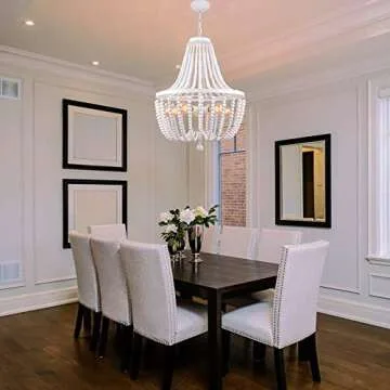 Show more Transform your space with the exquisite Alice House Pendant Light, a stunning centerpiece that offers both elegance and functionality. With meticulous craftsmanship, this light fixture features beautifully designed beaded elements that instantly enhance any room's aesthetic. Whether you're looking to elevate your dining area, living room, or foyer, this chandelier will become a conversation starter among your guests.