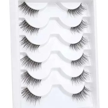 ALICROWN Wispy Half Lashes with Clear Band - Natural Look 6 Pairs