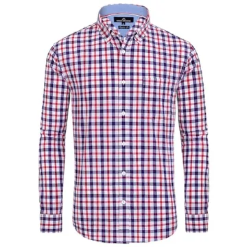 Alimens Gentle Men's Long Sleeve Button Down Plaid Dress Shirts
