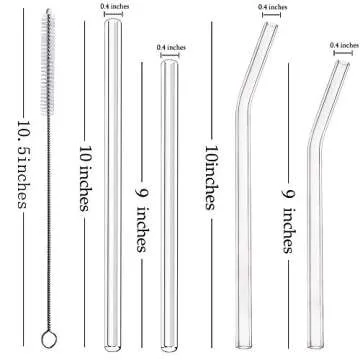 ALINK 8-Pack Clear Glass Smoothie Straws, 10mm Wide 10" + 9" Long Reusable Drinking Straws with 2 Cleaning Brush