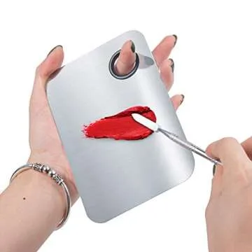Show moreIntroducing the ALIOBC Makeup Mixing Palette, your new best friend in achieving flawless makeup application. This innovative, upgraded stainless steel metal tray is not just durable but also lightweight, making it an ideal tool for professional makeup artists and beauty enthusiasts alike. Say goodbye to heavy, cumbersome palettes! Measuring 4.5 x 2.9 inches, it fits perfectly in your hand, allowing for easy maneuverability as you mix foundations, eyeshadows, and nail-art polishes. With black rubber-coated finger holes, you can maintain a secure grip, ensuring your palette stays exactly where you need it while you work your magic.